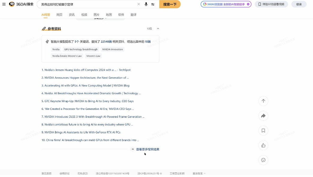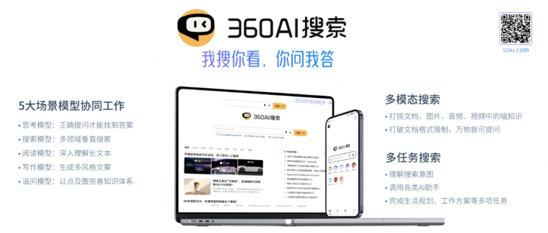 360AI搜刮智能搜刮背后有5大模子支持。360AI搜刮不只能支撑快速生成谜底,思虑模子。